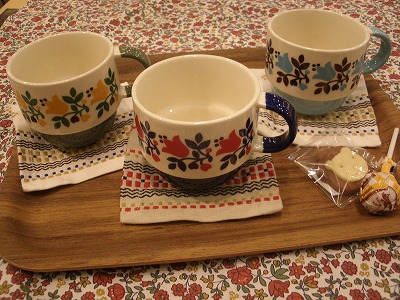 シンプルなこちらの1点。そのシンプルさが愛らしいです。シンプルなのでコースターとのコーディネートもお楽しみいただけるかと思います。ノルディック柄のコースターもこれからの季節にもってこいですよね。