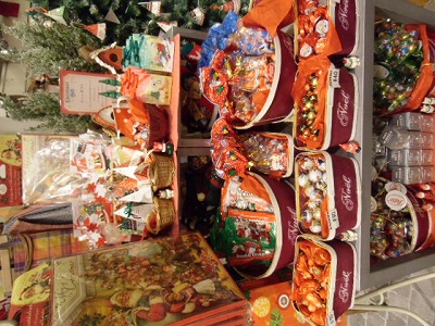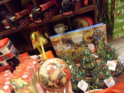 サンタさんやオーナメント型のチョコレートや定番のキスチョコ、クリスマスパッケージの紅茶などなどで売り場がきらきらしています。
