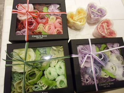 こちらは高級感のある黒いボックスに入ったバラ風呂が手軽に楽しめるギフトです!誰もが夢見るバラ風呂♪贈り物にぴったりです。1260円です。