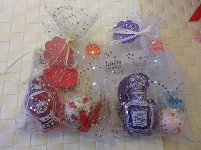 キラキラスパンコール、キュートなドット!巾着がかわいいばすギフト☆