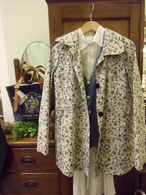 こちらのコートは¥29400で、綿100%ですが防水加工されていますので、柔らかい春雨の中着て外出するのなんかも素敵ですね♪