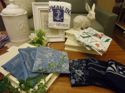 手前のハンカチは藍染のハンカチで、独特の色合いを出しています。