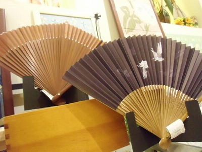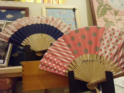 ドットがかわいらしい手前の扇子は女性に人気です。