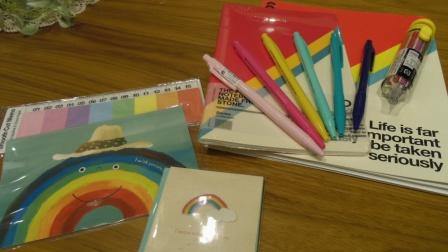可愛いポストカードやノート、使いやすくて大人気のカラフルボールペンなど、、