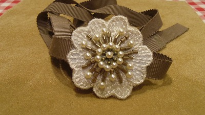 今回はブローチ。ヘアゴムにも変更できる、とても可愛いブローチです。