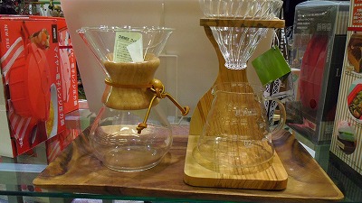 左、CHMEXのコーヒーメーカーと、右、HARIOのコーヒーメーカーです。