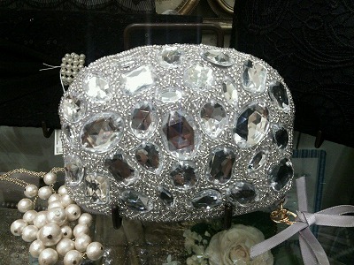 ビジューがキラキラと華やかなポーチです。