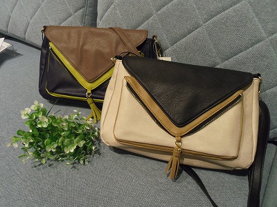 こちらのバッグは、ツートンカラーと真ん中のタッセルがポイントになっているショルダーです。