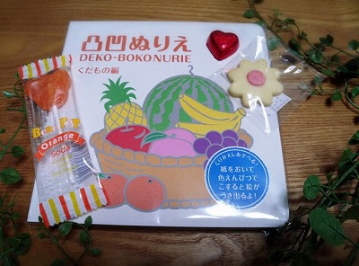 「凸凹ぬり絵」…色鉛筆でこすると、果物の絵が浮き出てきます。