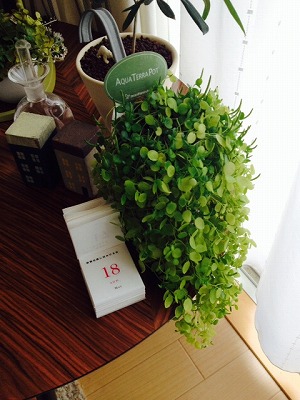 となりにおいてあるのはまさに日めくりカレンダー。水遣りとカレンダーをめくるのが日課です。