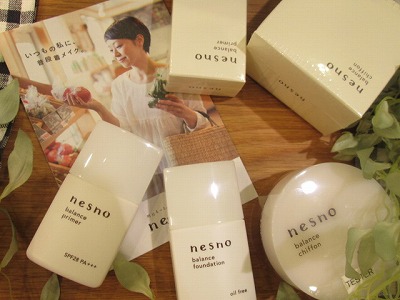 今回、INOBUN高の原店も、只今注目されているオーガニックコスメ”nesno[ネスノ]”の新商品”バランスメイクシリーズ”を体験していただけるサービスをご用意して出展致します!