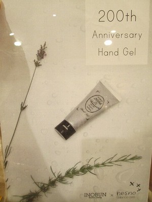 只今、nesnoさんとのコラボレーションで、INOBUN200周年記念といたしまして、イノブンハンドベール<ハンドゲル>50g¥1,200を販売しております。