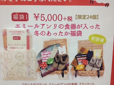 フランスのブランド、エミールアンリの食器、ブランケット、ルームシューズなどが入ったオススメあったか福袋です。