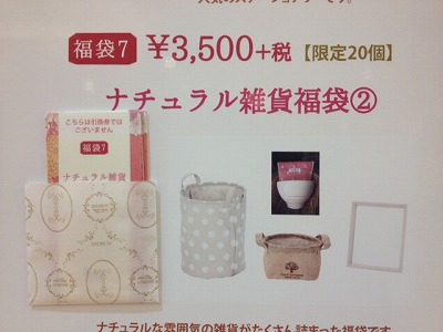 ナチュラルな雰囲気の雑貨がたくさんつまった福袋です。