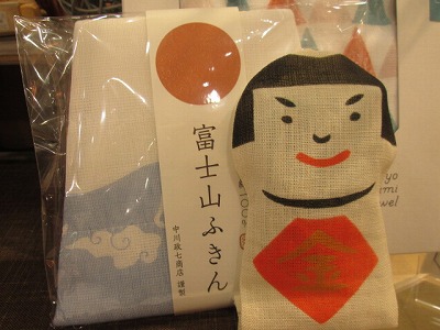 最後にご紹介するのは、私のお気に入り 富士山ふきんと可愛い金太郎の袋に入ったお菓子セットです。