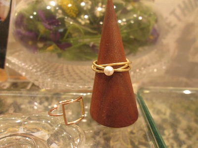 いつの頃からか、自分にはシルバーよりゴールドがしっくりくるな。と感じてからは、ずーっとゴールド派です。四角いリングは一目惚れ。何を付けようか迷った時は、ついつい手にとってしまいます。