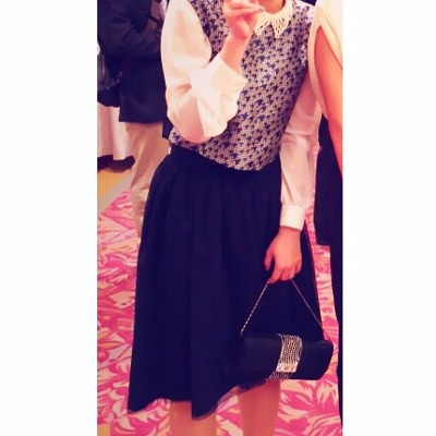 フォーマルなものですが、上下分かれているのでトップスだけで・スカートだけで、着たり履いたりもできます。ノースリーブなのですが、こうやって寒い時期は中にシャツを着ても可愛いので年中着れますよ!カジュアルな時も着れますし、使い回しもバッチリです♪