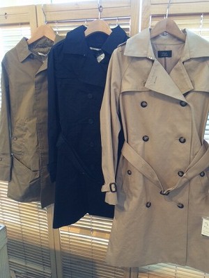 中でも一番右のタイプは、少し長めの丈でしっかりとしたハリ感があり、着た時のシルエットがきれい!と、いうことなしのトレンチです。