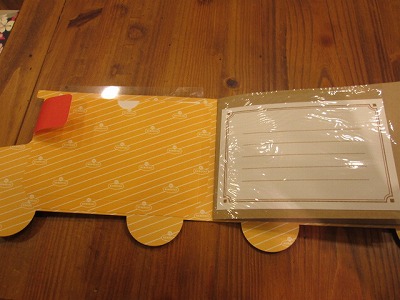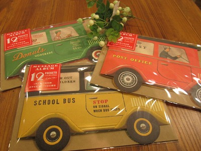 お友達に写真を渡す時にぴったりなメッセージアルバム、どこかレトロな車の形をしたデザインが特徴的です。