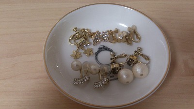 特にお気に入りは一番右手前の、コットンパールとビジューのイヤリングです。