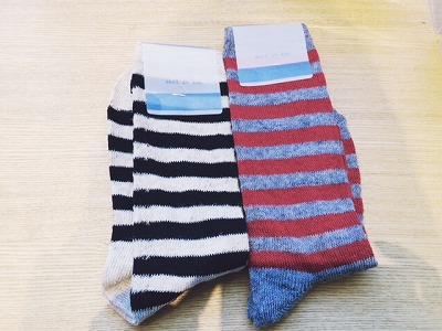 こちらのボーダーの靴下です。