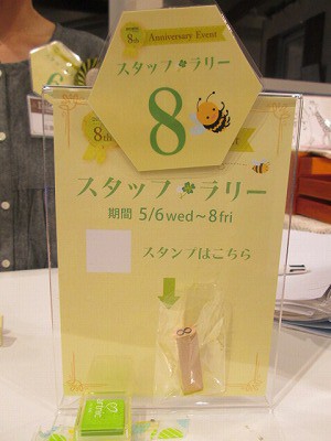 スタッフラリーのカードは、イノブン高の原店8周年にちなんでハチのキャラクターが飛んでます♪