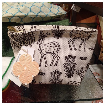 先ほどとは違って、すこしリアルな鹿のイラストがほどこされたポーチです。