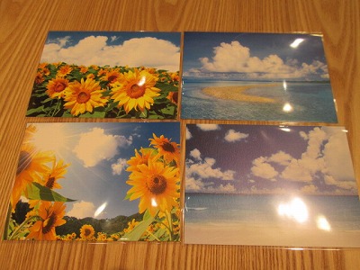 向日葵や海といった綺麗な風景のポストカード。