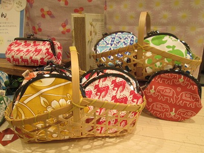 がまぐちポーチでは、普段ふきんではお作りしていない色合いのポーチに出会うことが出来ます。
