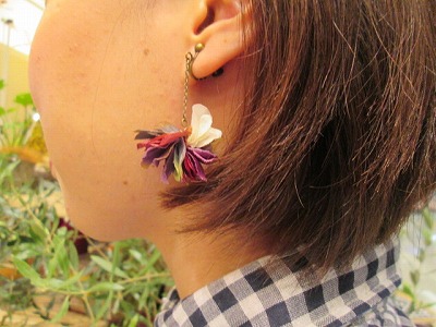 今回は秋色のフラワーボール(と名付けました)が、耳元でゆらゆら揺れて可愛いアクセサリーが作れました。
