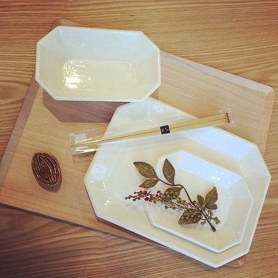 スタジオエムの食器です。トルテュっていうシリーズで、亀の甲羅をイメージしたデザインです。