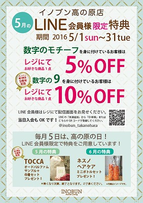 数字のモチーフを身につけているお客様はレジにて1点5%OFF。