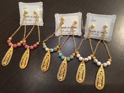 こちらピアスとネックレスどちらも3色、ご用意ございます。