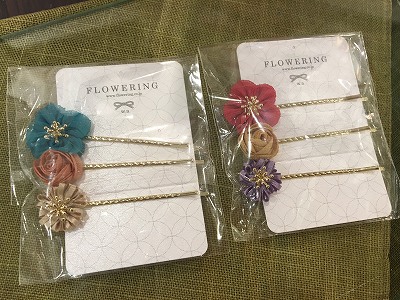 こちらのヘアピンをつけるだけで華やかです。お花がついているのでシンプルにはなりません。
