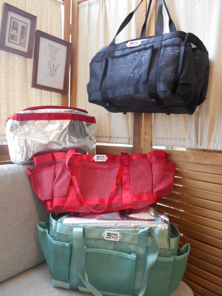 ビニール素材なので、水に濡れても安心で、お弁当入れなどにも使えます(^_^)使わない時はスリムに収納できるのも魅力的ですね!