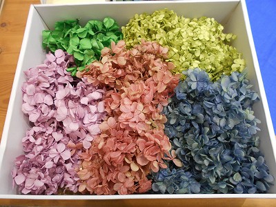 ローズに合わせて、アジサイのプリザーブドフラワーもこんなにご用意して頂きました。