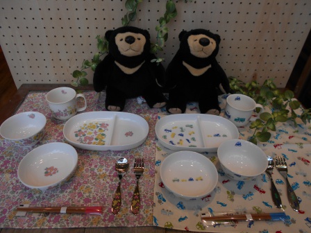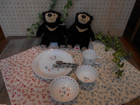こちらは、以前から人気のモービルと、フラワーバードの食器たち。割れにくいメラミンのシリーズも人気ですが、お祝いにはぜひ、こちらの陶器のシリーズを^ ^