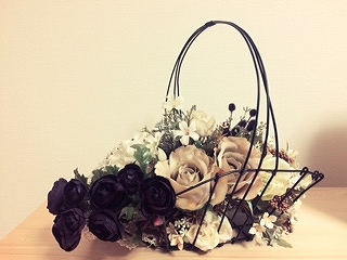 秋らしいインテリアには、シックな色の造花がマスト!少し変わった形のバスケット(一目惚れでした…!)が、かわいらしさも忘れずきちんと演出してくれます。たっぷりの造花で、お部屋を華やかに♩