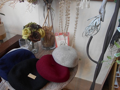 こちらは、定番で人気のベレー帽。よく見ていただくと、形も少しずつ違いますので、一つ一つ手に取ってご試着して頂きたいです。