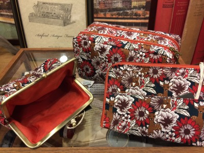 スピアのポーチです。新作の柄で、鹿やリスが覗いています。