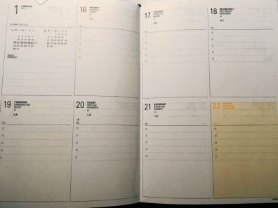 こちらは全体的にシンプルなデザインで、1日1日しっかり書き込めるスペースもあり、