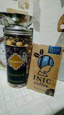 INIC coffeeを飲みながらポップコーンを食べる。なんと幸せなひとときでしょう…