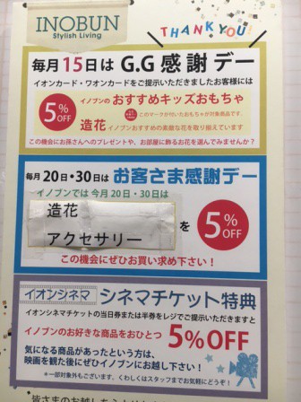 イオンシネマチケットの当日券または半券をお持ちいただけましたら、お会計時お好きな商品が1点5パーセントOFF
