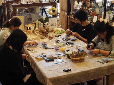 今回も造花やアヴリルの糸等を使って、かなり手の込んだものをおつくり頂けたので皆様かなり集中されてました^^