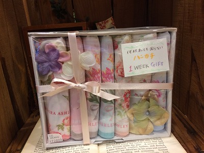 ハンカチ2枚とハンドクリームのギフトです。実用性ばっちりで見た目もかわいい!喜ばれること間違いなしです^^