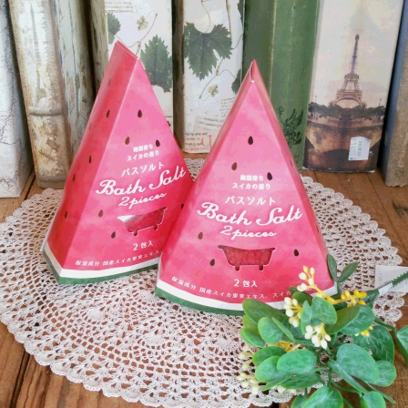 そのまま食べてしまいそうなほどリアルですが、中にはスイカの香りのバスソルトが2包入っています。