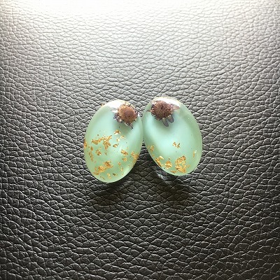 金箔とお花をレジンで閉じ込めた透明感のあるピアスです。上品で女性らしさがある見ているだけでも素敵な一品。