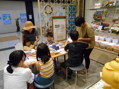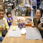 出来上がったら用意された骨組みのうちわに貼り付けるだけのお手軽なワークショップです♪