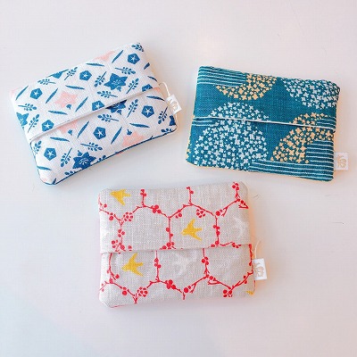 お揃いティッシュポーチもあります。ギャザーポーチとティッシュポーチは本当に人気で贈り物に最適です。 ティッシュポーチ¥1500+TAX