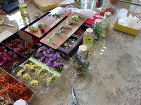 お好きな花材を、特殊なオイルの入ったビンにいれてお楽しみ頂けるイベントでした♪